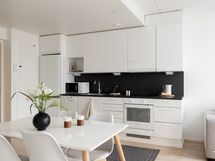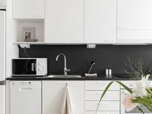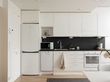 - Liesi: erillisuuni, liesitaso. Työtasot: laminaatti. Kylmäsäilytys: jääkaappi/pakastin. Varustus: liesikupu, astianpesukone, kiinteät valaisimet.