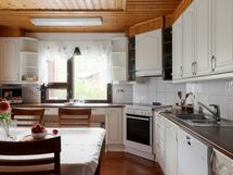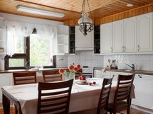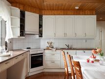 - Varusteet: jääkaappipakastin, jääkaappi, astianpesukone. Työtaso: laminaattitaso. Liesi: keraaminen liesi, leivinuuni, liesituuletin hormilla. puuliedelle hormivaraus