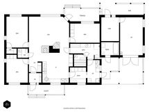 - Pinta-alatiedot on saatu rakennuslupapiirustuksista. Asuintilojen pinta-alaksi on ilmoitettu piirustuksien mukainen huoneistoala. Muissa tiloissa ilmoitettu autotalli, varasto ja tekninen tila, joiden pinta-ala on saatu ulkomittojen mukaan (6,3m x 6m).