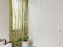 pöytätasojen laminaatit uusittu, tapetoitu ja maalattu puuosat