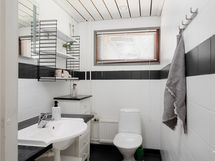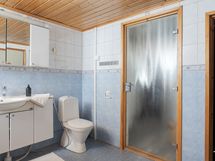 - Varustus: suihkuseinä, pesukoneliitäntä, lattialämmitys, wc-istuin, suihku, peilikaappi, kiinteät valaisimet. Erillisen WC:n kuvaus: Valopeili ja kaapisto varusteena.