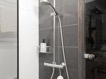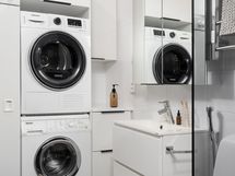 - Pesutilojen kuvaus: pyyhekuivain, ovi suihkuun, tummennetut lasit, pyykin kuivauskaappi. Varustus: suihkuseinä, pesukoneliitäntä, lattialämmitys, wc-istuin, suihku, peilikaappi, kiinteät valaisimet, kylpyhuonekaapisto.