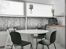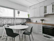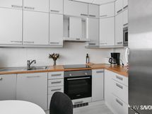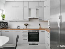 - Keittiön varusteet: Erillinen pakastin, jääkaappipakastin, liesi, erillisuuni (Kiertoilma), astianpesukone ja mikroaaltouuni. Liesi: Induktioliesi. Työtason materiaali: Puu.