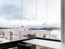 - Ikkunoista näkymät viereisiin taloihin ja järvelle. Parvekkeelta järvinäkymä.
