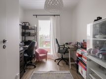 - Ikkunoista näkymät takapihalle ja yhtiön pihalle. Ikkunoita kolmeen suuntaan.