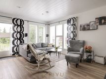 - Asunnossa on terassi. Avoterassi takapihan puolelle. Siirrettävä katos.