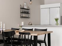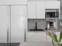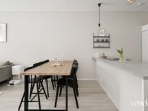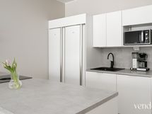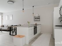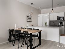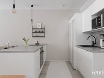 - Keittiön varusteet: Jääkaappi, erillinen pakastin, liesi, erillisuuni, liesituuletin, astianpesukone ja keittiösaareke. Liesi: Induktioliesi. Työtason materiaali: Laminaatti.