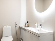 - Pesutilojen varusteet: WC-istuin, suihku, suihkuseinä, lattialämmitys, peili, allaskaappi, bidee-suihku ja pesuallas. Erillisten WC:n lukumäärä: 1. Erillisen WC:n varusteet: WC-istuin, allaskaappi, bidee-suihku, lattialämmitys ja peili.