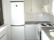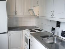 - Suuri tiskipöytä, Paljon kaappitilaa, Sähköliesi, Liesikupu, Jääkaappi, Pakastin