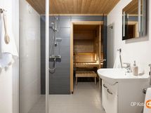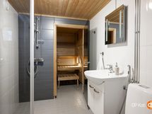 - Sauna remontoitu 2012, puukiuas, kylpyhuone 2012 remontoitu, erillinen wc, suihku, peilit kylpyhuoneessa, peilikaappi erillinen wc, kaapit, allaskaappi, pesukoneliitäntä, lattialämmitys kylpyhuoneessa, vesikiertoinen sekä sähkövastuksilla, kiinteät valaisimet.
