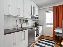 - Jääkaappipakastin, erillisuuni, liesitaso, liesikupu, astianpesukone, kaapistot, kiinteät valaisimet.