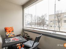 - Läpitalon huoneisto, makuuhuoneet sisäpihan puolelle, olohuone ja parveke Voionmaankadun puolelle.