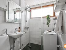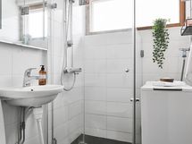 - Kylpyhuone, suihku, suihkuseinä, peilit, kaapit, lattialämmitys, kiinteät valaisimet.