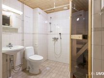 - Pesutilojen varusteet: WC-istuin, suihku, peilikaappi, pesuallas, bidee-suihku ja pesukoneliitäntä.