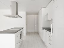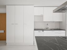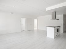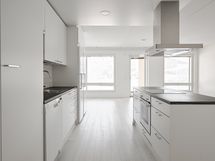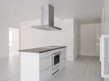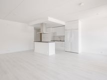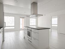 Kodissa on valoisa ja avara keittiö–olohuonetila, jossa arki ja juhla kohtaavat luontevasti. Modernissa keittiössä on käytännöllinen saareke, joka tuo lisää työskentely- ja säilytystilaa sekä toimii luontevana kokoontumispaikkana perheelle ja vieraille. Suuret ikkunat tuovat tilaan runsaasti luonnonvaloa ja tekevät kokonaisuudesta ilmavan ja viihtyisän.