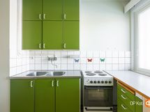 - Jääkaappi, sähköliesi, kaapistot, kiinteät valaisimet.
