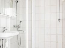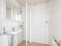 - Kylpyhuone, suihku, suihkuseinä, peilikaappi, pesukoneliitäntä, kiinteät valaisimet.
