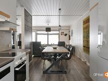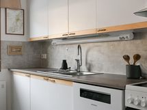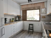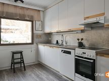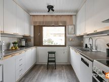 - Jääkaappipakastin, keraaminen liesi, liesituuletin, astianpesukone, kaapistot, kiinteät valaisimet.