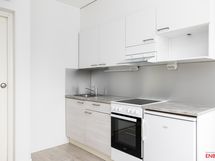 Liesi: sähköliesi. Työtasot: laminaatti. Kylmäsäilytys: jääkaappi. Varustus: astianpesukone.