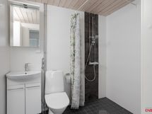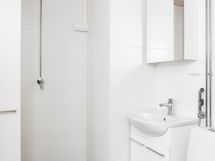 Varustus: pesukoneliitäntä, lattialämmitys, wc-istuin, suihku, peilikaappi.