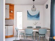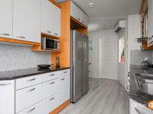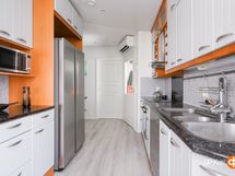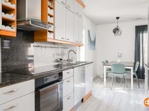 - Jääkaappipakastin, erillisuuni, induktioliesi, liesituuletin, astianpesukone, kaapistot, kiinteät valaisimet.