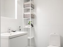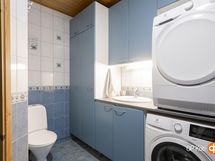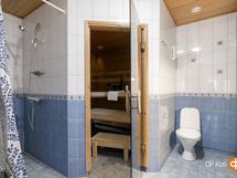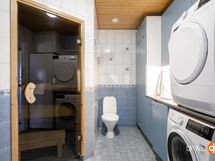 - Sauna, sähkökiuas, kylpyhuone, erillinen wc wc myös kylpyhuoneessa, suihku, peilit wc:ssä, kaapit, allaskaappi wc:ssä, pesukoneliitäntä, lattialämmitys, kiinteät valaisimet.