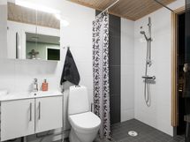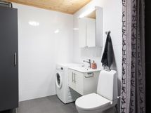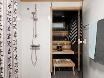 - Pesutilojen varusteet: WC-istuin, suihku, pesukoneliitäntä, lattialämmitys, peilikaappi, pesuallas, allaskaappi ja bidee-suihku.