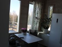 Talo on 2020 kontion painumattomasta hirsistä rakennettu kompakti paketti. talossa on 50m2 jossa eteinen,tupakeittiö,makuuhuone ja kylpyhuone missä sauna, saunasta löytyy sähkökiuas ja infrapuna paneelit. korkea melkein 4metrin huonekorkeus tuo tilan tunnetta, isoista ikkunoista avautuu komeat maisemat. olohuoneesta on käynti isolle terassille. hirsitalossa on sähköinen lattialämmitys kaikissa huoneissa, lisäksi talon keskellä on suuri varaava takka, kamina(mahdollista ottaa pois) ja ilmalämpöpumppu. 13000kwh/vuosi