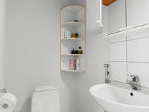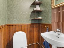 - Pesutilojen varusteet: Peilikaappi, pesuallas ja suihku. Pesutilojen kuvaus: Vuonna 2006 remontoidussa kylpyhuoneessa on suihku, vesikiertoinen lattialämmitys, peilikaappi ja pesuallas. Erillisten WC:n lukumäärä: 2. Erillisen WC:n kuvaus: Erilliset wc:t sijaitsevat 1 ja 2 kerroksessa.