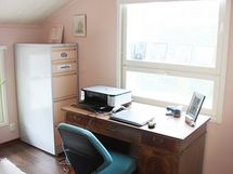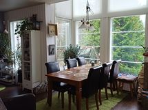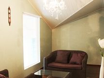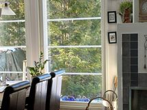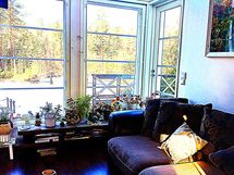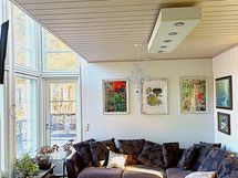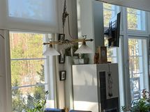 - Valoisa, Korkeat huoneet, Korkeat ikkunat, Paljon ikkunoita, korkeissa ikkunoissa rullaverhot, jotka jää