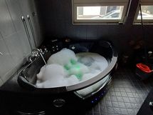 - Useita suihkuja, Poreamme, Pesukone, Kuivausrumpu, Peilikaappi, Allaskaappi, Laattalattia, Laattaseinä, Avattava ikkuna, Erillinen WC, Lattialämmitys