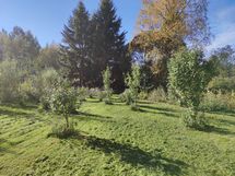 Pihapiiri on aurinkoinen ja suojaisa. Tontilla kasvaa useita omena-, luumu- ja kirsikkapuita sekä runsaasti marjapensaita: aroniaa, karviaisia, vadelmia, karhunvatukkaa ja raparperia. Täällä voit nauttia omasta sadosta, kasvattaa puutarhaa tai vain rentoutua luonnon helmassa. Vain yksi naapuri lisää yksityisyyttä.
