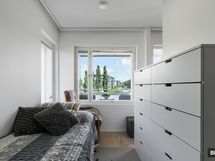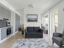 Olohuone ja avokeittiö tarjoavat tyylikkäät puitteet arkeen sekä tilaa omanlaisen sisustuksen luomiseen. Kahden kulkuaukon ansiosta makuuhuoneeseen sopii suurikin parisänky ja tarjolla on myös hyvin säilytystilaa. Kylpyhuone on tilava ja tyylikäs kokonaisuus, jonka lasiseinäinen sauna tarjoaa arjen rentoutusta milloin vain. Kokonaisuuden kruunaa reilunkokoinen, ulostyöntyvä parveke, jolta avautuu kauniin puistomainen näkymä.