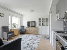 Omistajan sanoin: "Tilavalta, lasitetulta parvekkeelta esteettömät näkymät kolmeen suuntaan, lisämukavuutta ja suojaa auringonpaisteelta antavat vekkikaihtimet. Loistava sijainti, valoisa kulmahuoneisto toimivalla pohjaratkaisulla. Savuton kiinteistö takaa raikkaan merituulen parvekkeella ja pihalla."