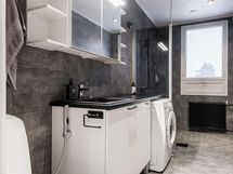 - Jääkaappi/pakastin, keraaminen liesi, uuni, liesituuletin, astianpesukone, kaapistot