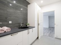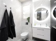 - Pesutilojen varusteet: WC-istuin, suihku, lattialämmitys, peili, pesuallas, allaskaappi ja bidee-suihku. Pesutilojen kuvaus: Rakennustapaselosteen mukainen varustus. Erillisten WC:n lukumäärä: 1. Erillisen WC:n varusteet: WC-istuin, lattialämmitys, peili, pesuallas, allaskaappi ja bidee-suihku. Erillisen WC:n kuvaus: Rakennustapaselosteen mukainen varustus.