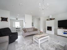 Uudehko, moderni koti Auranlaaksosta. loistavalla sijainnilla. Tässä talossa yhdistyy moni hyvä asia: talon laatu, oma tontti, maalämpö, sijainti sekä toimiva pohjaratkaisu. Kodin materiaalit on valittu huolella ja värimaailma onkin raikas vaalea, jota voi teksitiilien kautta värittää mielensä ja vaikka vuodenaikojen mukaan. Lattialämmityksellä olevaan autotalliin pääset kätevästi ajamaan säältä suojaan ja toiselle autolle autokatos. Isolle terassille mahtuu hyvin kaikki tarvittava suojaisasti ja tasaista pihaakin jää tarpeeksi. Pihasta löytyy ihastuttava kota, jossa voi viettää mukavia tulen loimussa.