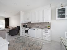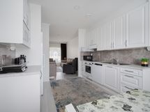 Liesi: keraaminen, erillisuuni. Kylmäsäilytys: jääkaappi, pakastekaappi. Varustus: mikroaaltouuni, kiinteät valaisimet.