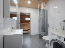 Varustus: pesukoneliitäntä, lattialämmitys, wc-istuin. Varustus: lattialämmitys, bidee-suihku.