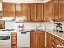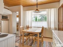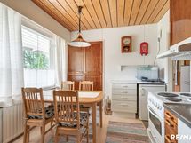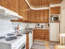 - Keittiön varusteet: Erillinen pakastin, jääkaappi, uuni, liesi, astianpesukone ja liesituuletin. Liesi: Valurautaliesi. Työtason materiaali: Laminaatti.