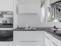 - Jääkaappipakastin toimii hyvin, mutta ei valoa sisällä,himmeä näyttö, erillisuuni, liesitaso, induktioliesi yksi keittoalue ei toimi, liesituuletin suodattimella, mikroaaltouuni, astianpesukone, kaapistot, viinikaappi, kiinteät valaisimet. Jääkaappipakastin varustettu jääpala- ja vesikoneella