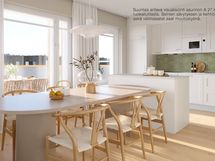 Sudenkorennon kodit hurmaavat käytännöllisyydellään ja viihtyisyydellään. Valinnanvaraa riittää, asuntojen koot ovat 30–86 m². Jokaisessa kodissa on iso lasitettu parveke, jolla on ihana kahvitella, kasvattaa kesäkukkia ja harrastaa. Ikkunat ovat isoja ja kaikki kodin huoneet kylpevät luonnonvalossa. Säilytystilat on suunniteltu niin, että kaikille tavaroille löytyy helposti oma paikkansa. Osassa koteja oma sauna tuo luksusta arkeen ja mahdollisuuden rentoutua omassa rauhassaan silloin kun haluaa. Kuumat kesähelteet eivät täällä hirvitä, sillä kodeissa on varaus ilmalämpöpumpulle. Viihtyisä pihapiiri saa aikuiset viihtymään ja lapset leikkimään. Taloyhtiö on savuton, mikä takaa raikkaan ja terveellisen asuinympäristön. Autoille on paikat autokatoksessa ja piha-alueella.