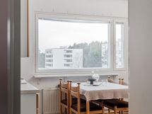 Asunto sijaitsee talon toiseksi ylimmässä kerroksessa (7/8 krs), mikä takaa runsaasti luonnonvaloa. Kodin yleisilme on siisti ja muuttovalmis, sillä asuinhuoneisiin on uusittu tyylikäs ja yhtenäinen laminaattilattia vuonna 2014. Vaikka koti on oikein siististi pidetty, osa pinnoista kaipaa jo päivitystä nykypäivään. Tämä onkin loistava tilaisuus remontoida asunnosta juuri oman maun mukainen kokonaisuus. Asunnon toisena olohuoneena toimii lasitettu länsiparveke, joka kutsuu nauttimaan ilta-auringosta pitkälle syksyyn.