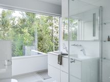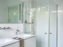 - Pesutilojen kuvaus: Alakerran kylpyhuoneessa kaksi suihkua.