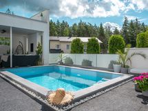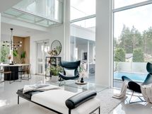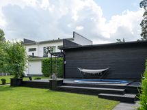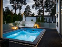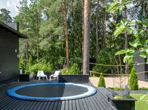 - Sähköliittymä. Muuta kauppaan kuuluvaa: Kiinteät kaapistot, kiinteät valaisimet, keskuspölyimuri, ulkoporeallas, terassiin upotettu hiekkalaatikko sekä trampoliini, leikkimökki, pihasaunan jääkaappi. Asuinrakennuksessa lisäksi integroitu ääntentoistojärjestelmä (kaiuttimet k, oh, molemmat kph, uima-altaan terassi). Kauppaan ei kuulu: Irtaimisto.