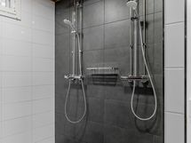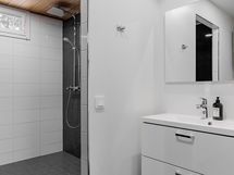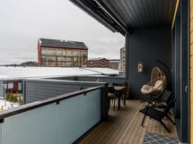 Oleskelutilasta avautuu kulku suurelle terassille, jonka koko alan kattava automatisoitu markiisi viimeistelee kesäpäivien ja -iltojen nautinnon. Samassa kerroksessa sijaitsevat myös yksi makuuhuone sekä tyylikäs kylpyhuone saunalla – täydellinen paikka rentoutumiseen.