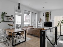 Harvinainen päätyhuoneisto talon paraatipaikalta – valoa, avaruutta ja viimeisteltyä asumismukavuutta