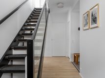 Asumismukavuutta täydentävät ilmalämpöpumppu, sähkölukot sekä katoksen alla sijaitseva autopaikka sähköauton latausasemalla. Aurinkopaneelit tuottavat energiaa auton lataukseen, tuoden modernia energiatehokkuutta arkeen.