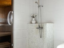 - Kph: 2x suihku, poreamme (Svedberg Cadazzo), sähkösauna: lauteet lämpökäsitelty haapa (Sun-sauna) , 2x erillinen wc: allaskaapisto, peili, Novitek suihkukaappi (ak)