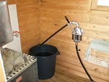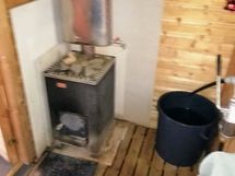 Sähkökäyttöinen kiuas. Rantasaunalla puukiuas,Rantasaunalle saa veden myös pumpulla järvestä.